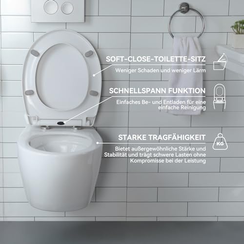 DIE SOFT-CLOSE-ABDECKUNG IST LEISER: Eine Soft-Close Sitz die nicht nur eine Beschädigung wirksam verhindern kann, sondern auch eine leisere Nutzungsumgebung schafft, sodass Sie sich keine Sorgen machen müssen Stören Sie Ihre Familie, selbst wenn Sie es nachts benutzen. Der WC-Sitz per Knopfdruck entfernen und reinigen.