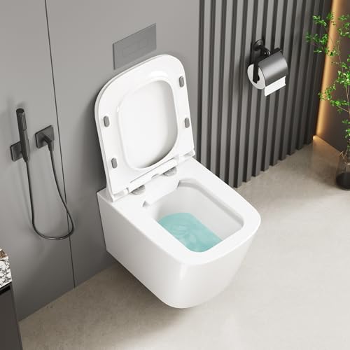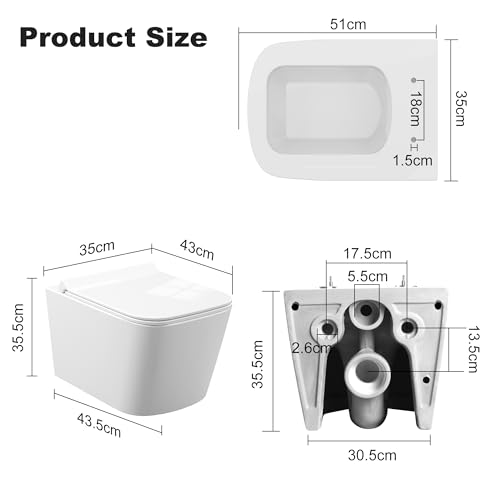Toilette Spülrandlos – Die Toilette hat ein randloses Design, so dass es keinen Platz für Schmutz zu verstecken, die Vermehrung von Bakterien zu reduzieren, die erleichtert Ihnen die Reinigung und sorgt für extra Hygiene und glänzende Sauberkeit.