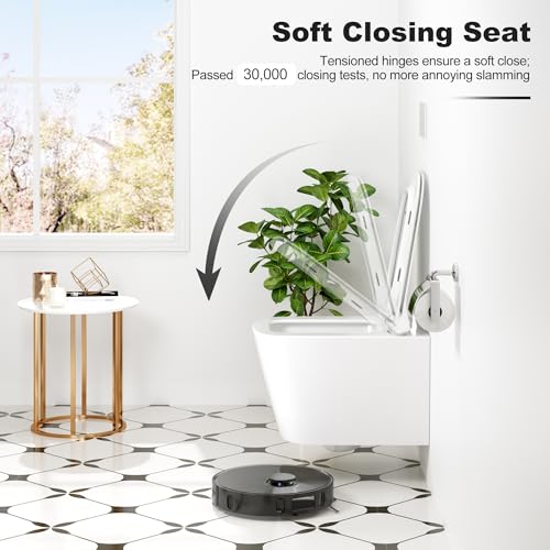 Hängend WC Toilette, Spülrandlos Wand-WC Set aus Keramik mit Toilettendeckel Abnehmbaren Absenkautomatik Effizienter Spültechnik Hängetoilette, U-Form,Lang 51cm, Weiß