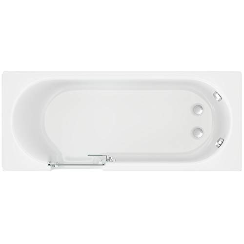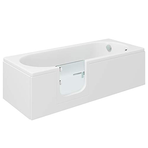 CASCADE Badewanne mit Tür, Seniorenbadewanne 150x70x51cm (LxBxT) An dieser Stelle kaufen Sie eine hochwertige Badewanne mit Einstiegstür / Seniorenbadewanne. Die Badewanne ist anstatt die ganze Familie im Rahmen, insbesondere jedoch anstatt Senioren und pflegebedürftige Menschen. Durch den besonders niedrigen Eintritt wird trendig Senioren und pflegebedürftigen Menschen ein entspannendes, erholsames und wohltuendes Badevergnügen ermöglicht. Und An dieser Stelle die Details/Lieferumfang im einzelnen: Badewanne 150x70cm (Länge x Breite) auf stabilem Fußgestell,Farbe weiß verstärkter Wannenboden + Glasfaserarmierung anstatt hohe Alterungsbeständigkeit Höhe der Badewanne mit Wannenschürze: 51 cm Tür jeder 8mm starkem Einscheibensicherheitsglas mit Glasbeschichtung Tür mit manuellem Sicherheits-Schliess-System Knauf, Schloss und Scharniere jeder hochwertigem polierten Edelstahl Spezielles Ablaufsystem anstatt 40% schnelleres Entleeren der Badewanne, Front- und Seitenschürze jeder weißem Acryl.Die Auslieferung erfolgt mit Wannenfüßen.