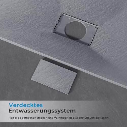 🛁Sicherheit und Komfort: Unsere Duschwanne verfügt über eine rutschfeste, strukturierte, schieferähnliche Oberfläche. Erleben Sie eine Dusche, die nicht jedoch hart im Nehmen, sondern alias komfortabel ist – keine eisigen Füße mehr bei winterlichen Regenschauern. Besonders Familien mit Kindern und ältere Menschen werden die erhöhte Sicherheit zu prognostizieren wissen.