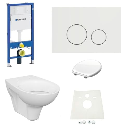 Bestehend leer: Geberit Spülkasten Drückerplatte weiß WC inkl. Beschichtung WC Sitz unter Zuhilfenahme von Absenkautomatik Schallschutzset