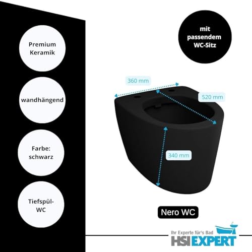 HGMBAD Set NERO Wand-Tiefspül-WC spülrandlos schwarz matt inkl. WC Sitz und Schallschutzset