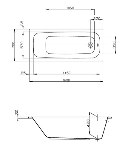 ✔ GRÖSSE | Design Acryl-Badewanne 160x70cm