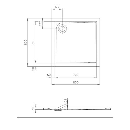 Hoesch Duschwanne 80x80x2,5cm Poresta Styropor Wannenträger direkt befliesbar, Höhe 14,5cm