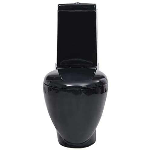 Home Garden,WC Keramik WC Badezimmer Runde WC Boden Wasserfluss Schwarz