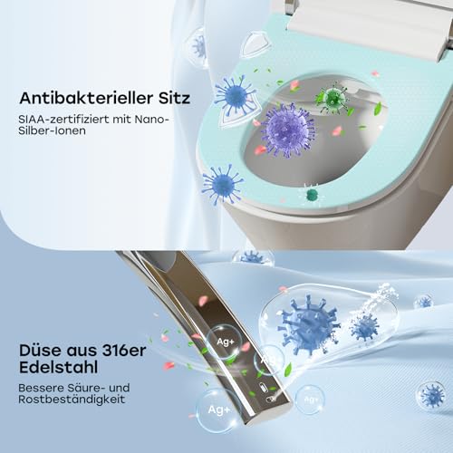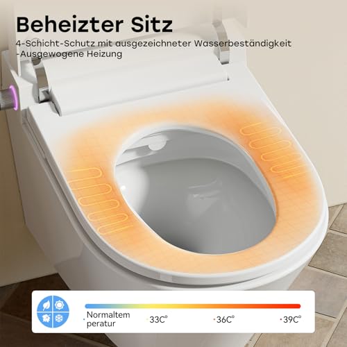 Sofortige Heiztechnologie: Die Bidet-Bedürfnisanstalt verwendet hochwertige Keramikkern-Heizwannen mit Sofortheiztechnologie, die von jetzt auf gleich und ohne Wartezeit aufheizen. Maximale Effizienz und Langlebigkeit. Hygienischer im Einigung zur traditionellen Wärmespeichertechnologie.