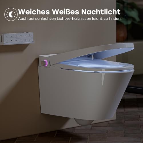 HOROW Intelligenter Hänge Toilette WC mit Bidet Funktion, Japanische Toilette Dusch WC Komplettanlage Bidet mit Warmwasser, Beheizter Sitz, Instellbarem Wasserdruck, Warme Lufttrocknung, Damenpflege