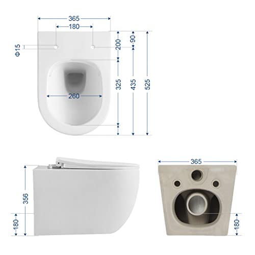 INSTALLATION IST EINFACH UND PLATZSPAREND: Tiefspül-WC mit P-Trap 180 mm, Installationsanleitung wird mitgeliefert und die Installation ist bequemer. Größe der Retirade: 525 x 365 x 360 mm. Kompaktes d-förmiges Wand WC spart mehr Platz wie traditionell WC und optisch geräumiger.