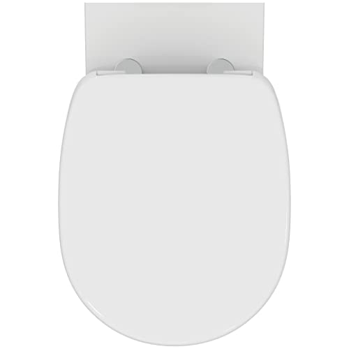 Ideal Standard – Connect WC Set, bestehend aus Wandtiefspül-WC inkl. WC-Sitz, Rundes Design, WC mit glasiertem Spülrand, WC-Sitz mit Absenkautomatik (Softclose), Weiß glänzend