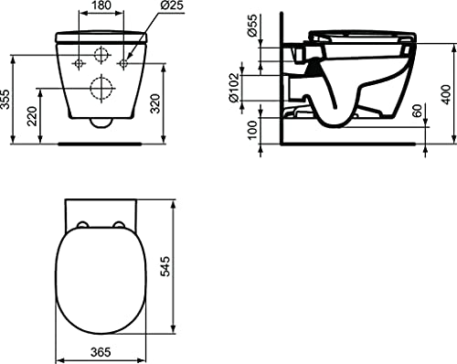 Pack frei hängendes Becken und WC-Sitz Soft-Schließ-Komfort Connect verglastes Porzellan, mit geschlossener Flansch Jagd direkte und unabhängige A Netzteil stellen mit einem Vorwandelements oder 1 Paar Schlüsselschraube-Sealer nicht enthalten + Produkt:-Bedienkomfort: WC-Sitz mit Absenkautomatik für ein sanftes Schließen-leichte Hygiene: Toilettenschüssel verkleidet ohne Winkel und WC-Sitz anzubringen