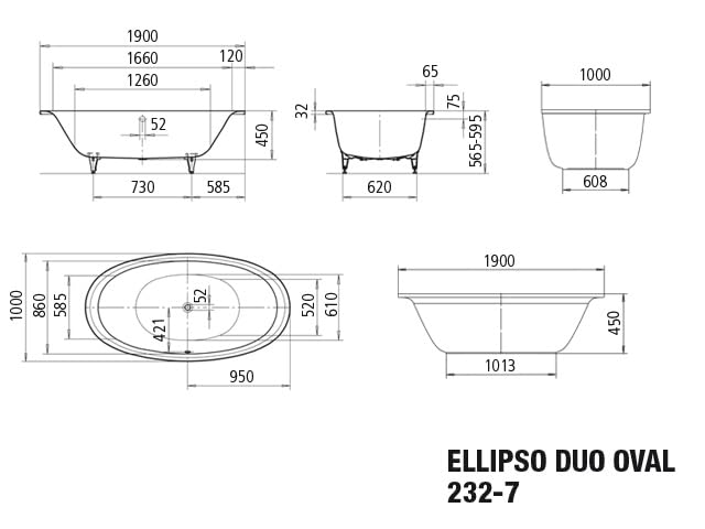 Kaldewei Badewanne Ellipso Duo Oval Freistehend Modell 232-7 190 x 100 x 44 cm, bestehend aus beschichtetem Spezial PUR, inkl. flexiblem Ablaufschlauch und Sonderfußgestell, alpinweiß mit Perl-Effekt