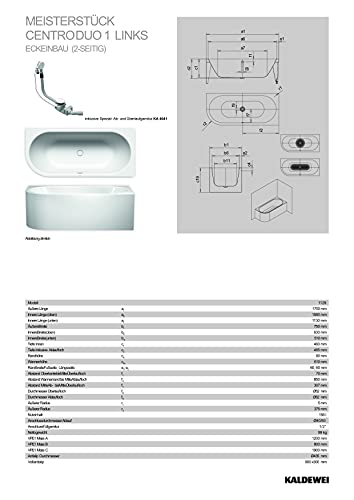 Kaldewei Badewanne Meisterstück Centro Duo 1 links Modell 1129-4041 170 x 75 x 46 cm, alpinweiß mit Perl-Effekt, Eckeinbau links