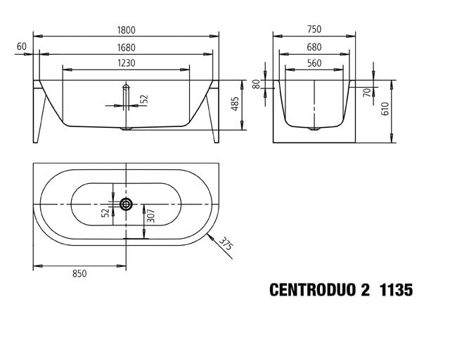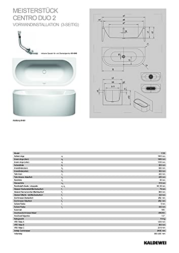 Kaldewei Badewanne Meisterstück Centro Duo 2 Modell 1135-4040 180 x 80 x 46 cm, alpinweiß mit Perl-Effekt, Vorwandinstallation