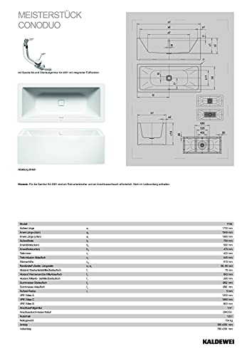 Kaldewei Badewanne Meisterstück Conoduo Modell 1732-4081 170 x 75 x 42 cm, alpinweiß mit Perl-Effekt, mit Spezial Ab- und Überlaufgarnitur mit Füllfunktion