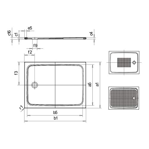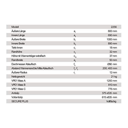 Kaldewei Duschwanne Cayonoplan 2256-5 mit Abstützsystem extraflach 80 x 100 x 1,8 cm alpinweiß