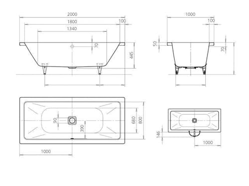 Kaldewei Stahl Badewanne Avantgarde CONODUO 735 Vollantislip 2000x1000mm alpin