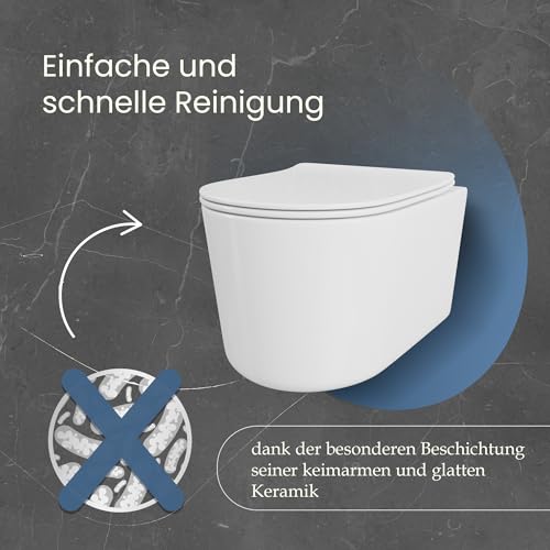 🚽 HÖCHSTE HYGIENE – Unsere Toilette gewährleistet nicht nur eine gründliche Reinigung, sondern auch die spülrandlose Bauart. Dank der besonderen Beschichtung seiner keimarmen und glatten Keramik Oberflächen kann das WC einfach und schnell gereinigt werden.