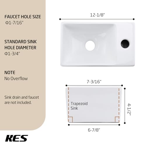 Waschbecken rechteckig: 30,5 x 18,3 x 11,4 cm. Standardablauföffnung 4,4 cm. Das Wasserhahnloch auf der Toilette spülen Seite passt zu Ihren Bedürfnissen.