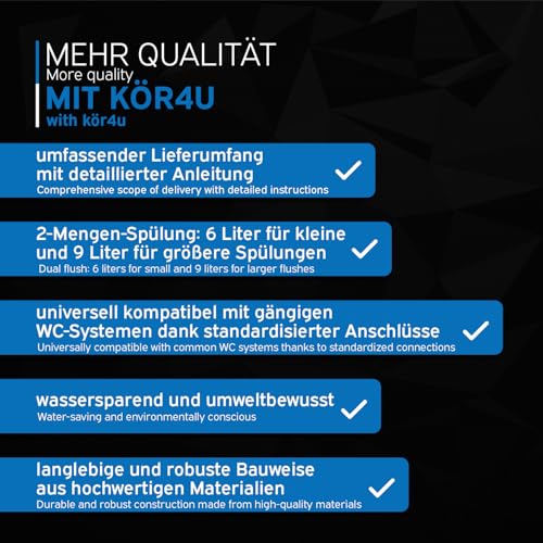LANGLEBIGE UND ROBUSTE BAUWEISE: Gefertigt nicht mehr da hochwertigen Materialien, bietet der kör4u Spülkasten eine langlebige und zuverlässige Funktionalität, die bekannt als bei täglichem Gebrauch inert bleibt.