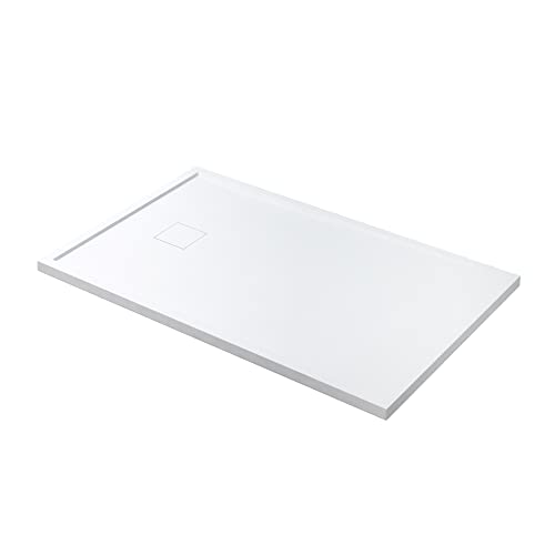 KOLMAN Duschwanne 110×90 cm Rechteck, Weiß, Acryl, Flach, Glatt, Verchromter Edelstahl Rinne + Ablaufgarnitur Ø 90 mm, Design-Duschtasse Rechteckig West New