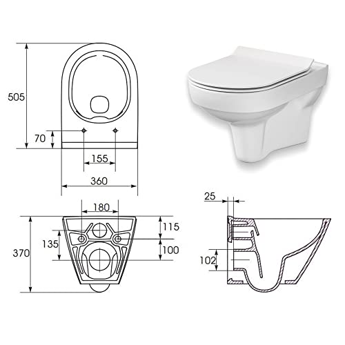 KOLMAN Wand-WC New City CleanOn Keramik Weiß Spülrandlos Komplettset inkl. Slim WC-Sitz mit Soft-close Absenkautomatik und Schallschutzmatte