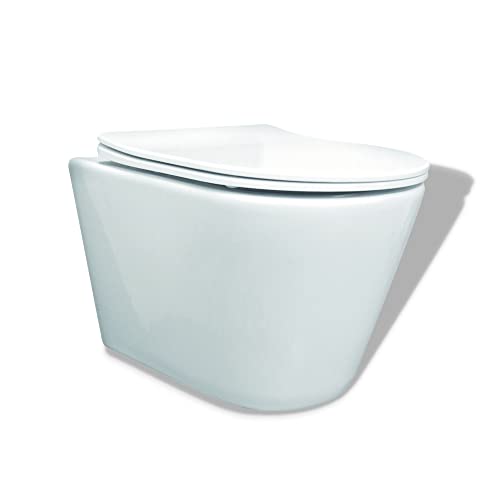 KOLMAN Wand-WC Tinos Spülrandloses Weiß mit Slim Soft-close Absenkautomatik Deckel und Schallschutzmatte Komplettset
