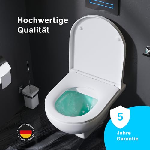 GARANTIE: Für Hänge-WC Schüssel und Vorwandelement, sowie für Soft-Close-Toilettensitz gilt eine 5-jährige Herstellergarantie. Für Betätigungsplatte – ist 2 Jahre Herstellergarantie vorgesehen.