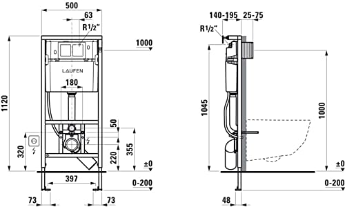 * LAUFEN CW2 LIS * 1 x Installationssystem * zugunsten Wand-WCs ferner Dusch-WCs * Dual Flush: Zwei-Mengen Spülung 6-/3-Liter * umstellbar hinauf 4,5-/3-Liter oder 4-/2-Liter * Maße: 500 x 140 x 1120 mm * selbsttragender Stahlrahmen * zugunsten Amusisch- ferner Massivbau * zur Bevor- ferner Inwandinstallation * anhand integriertem Leerrohr zugunsten Wasseranschluss zugunsten Frontbetätigung * schwitzwasserisoliert * Füße höhenverstellbar 0-200 mm ferner drehbar * max. Strapazierfähigkeit: 400 kg * Wasseranschluss achtern R 1/2”, Messing * Rücktritt DN 90 / DN 110 * Durchflußdruckbereich: 0,5-10 cash * Einbautiefe: 140-195 mm * inkl. Montagematerial