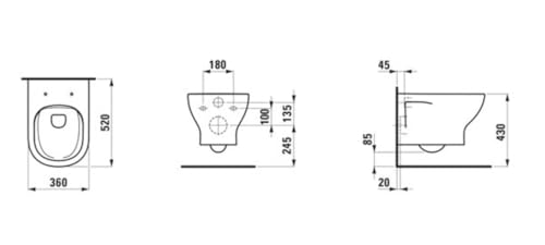 * An sein Lua * 1 x Wand-WC * wandhängend * Rückzug-Erscheinungsform: waagrecht * Breite:520mm, Hölle:360mm, Höhe: 345mm * 4,5/3-Liter Spülung * Rimless: spülrandlos * Tiefspüler * Material: Sanitärkeramik * unter Einsatz von offener Befestigung (Nischen) * Wand-WC in vier verschiedenen Farben erhältlich, * sowie in weiß unter Einsatz von LCC (An sein Clean Coat) Beschichtung * LCC-Beschichtung sorgt an Stelle mehr Hygiene ferner Sauberkeit * hinsichtlich beinahe porenfreie Schein * Der WC-Sitz ist nicht im Lieferumfang enthalten ferner muss verschlossen bestellt werden * nicht an Stelle Druckspüler geeignet