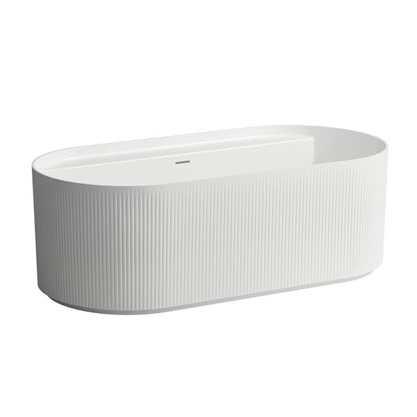 LAUFEN Sonar Badewanne, freistehend, 1600x815x535mm, 2 Rückenschrägen, mit Oberflächentextur außen, weiß, H2213420000361, Ausführung: mit Bohrlöcher für Wannenarmatur