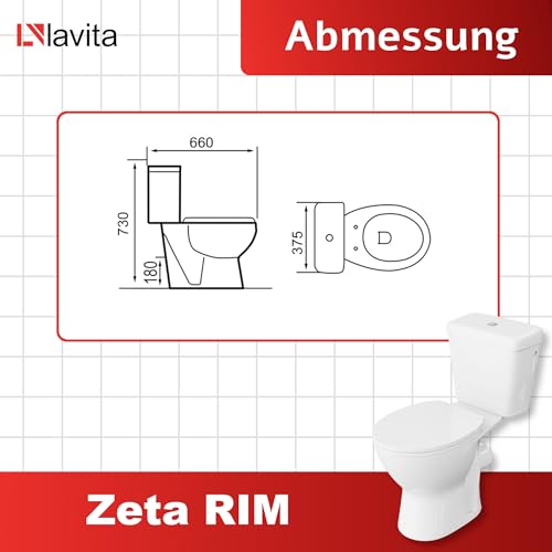 Das WC Zeta Rim verkörpert eine exquisite Kombination aus Funktionalität und ästhetischem Appeal, die es zur perfekten Appendix für jedes moderne Badezimmer macht. Mit seinem vollständigen, abgerundeten Design in Weiß fügt es sich nahtlos in jede Badezimmerdekoration ein, von loftartig und elegant bis minimalistisch. Dieses WC ist nicht daher ein praktisches Element, sondern bekannt als eine stilvolle Dekoration, die den einzigartigen Charakter Ihrer Einrichtung unterstreicht. Das Herzstück des Zeta Rim ist sein innovatives, spülrandloses RIM+ System, das eine effiziente und gründliche Reinigung ermöglicht, während es gleichzeitig den Wasserverbrauch minimiert. Hergestellt aus hochwertigem Porzellan, gewährleistet dieses WC Langlebigkeit und ist resistent gegen Kratzer sowie Verfärbungen. Zusätzlich bietet der universelle Execution zusammen mit dem unteren Wasserzulauf vielfältige Installationsmöglichkeiten. Der aus Duroplast gefertigte, frei fallende Sitz rundet das Gesamtbild durch seine Qualität und Funktionalität ab. Abmessungen in mm (L X B X H): 660x375x730 Material der Platte: Polypropylen Scharniermaterial: Metall Frei fallendes Brett: Ja Material der Schale: Porzellan Typ der Schale: Stehend Art des Wasserablaufs: Horizontal