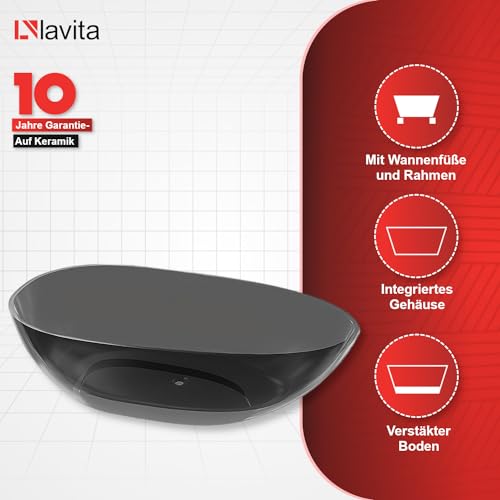 LAVITA Freistehende Badewanne Quenn Black 1700 Harz 170x85x59 cm Badewannen Oval Form Moderne Harz-Wanne Freistehend 2 Personen 322 L Antimikrobielle Beschichtung Schwarz