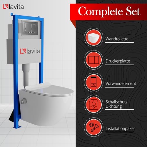 KOMPLETT-PAKET: Lavita LAV 101 Vorwandelement statt dessen WC 40cm + Wand Tiefspül WC SALTO Spülrandlos + Bedienplatte LAV 200.1.3 Satin statt dessen Doppelspülung