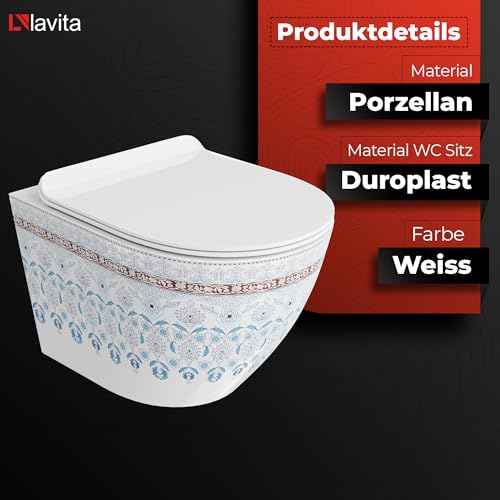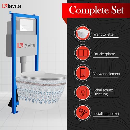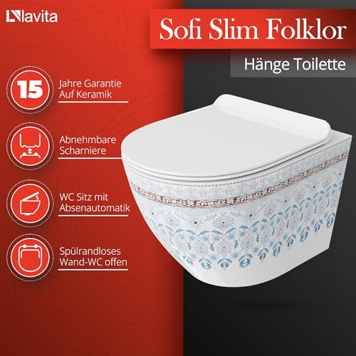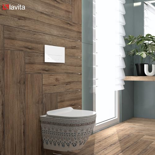 KOMPLETT-PAKET: Lavita LAV 101 Vorwandelement für WC 40cm + Wand Tiefspül WC SOFI SLIM FOLKLOR Spülrandlos + Bedienplatte LAV 200.3.1 Weiß für Doppelspülung