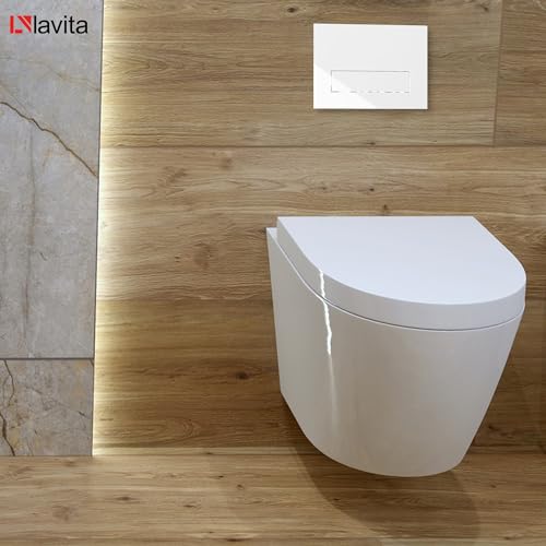 KOMPLETT-PAKET: Lavita LAV 101 Vorwandelement für WC 40cm + Wand Tiefspül WC SOFI Spülrandlos + Bedienplatte LAV 200.3.1 Weiß für Doppelspülung