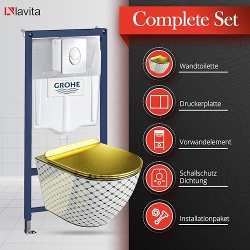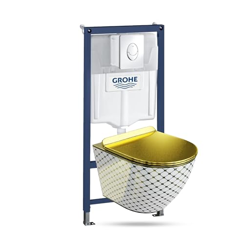 ALL IN ONE: GROHE Solido Aufbruch Skate Air Unterputz-WC-Garnitur + Sofi Slim Golden Never Die Wand-WC-Becken