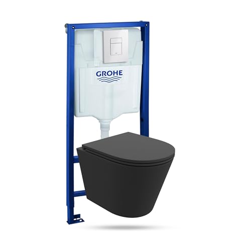 ALL IN ONE: GROHE Solido Unterputz-WC-Garnitur + Galve Black Wand-WC-Becken