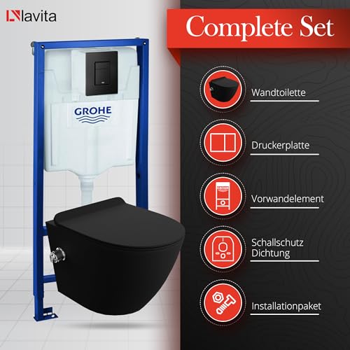 ALL IN ONE: GROHE Solido Unterputz-WC-Garnitur + Salto Black Wand-WC-Becken