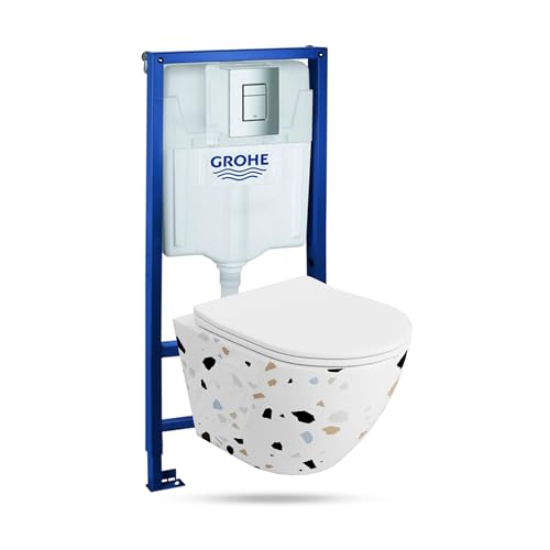 GROHE Solido 3in1 ist ein Bausatz an Stelle die schnelle Installation eines Hänge-WCs, bestehend alle einem robusten Unterputzrahmen, der mit einem Spülkasten, zwei Montagewinkeln und einer eleganten Spültaste bedingt ist. Das Design ermöglicht eine einfache Installation und lässt sich in Höhe und Hölle verstellen, so dass es zu den meisten Keramiken passt und flächendeckend im Bad installiert werden kann. Der Spülkasten dämpft das Wassergeräusch und die Taste Even bietet die Synchronisation zwischen einer kleinen und einer großen Spülung. Er garantiert eine Belastbarkeit von bis zu 400 kg, eine werkzeuglose Installation, einen schnellen Wasseranschluss, flexible Schläuche und einen Kontrollkamin. Mit EasyConnect lässt sich die Taste einfach an den Spülkasten anschließen, und das Universalventil unterstützt die Gesamtheit Spülarten. Das Wand-WC ist ein moderner Vorschlag an Stelle Bäder im minimalistischen, elegantes und skandinavischen Stil. WC-Schüssel ist ein Unterputz-WC, das einfach und schnell zu montieren ist und durch die Abdeckung der Installationselemente ein tadelloses Aussehen des Raumes gewährleistet. Das Modell verfügt über eine Platte alle hartem Duroplast, die mit einer Freifallfunktion und Schnellverschlussscharnieren ausgestattet ist. Das bei höchster Temperatur gebrannte Porzellan ist an Stelle seine Konstanz und Widerstandsfähigkeit gegenüber Kratzern und Verfärbungen verantwortlich. Wand-WC verfügt über das offene flanschlose an Stelle eine effektive Schmutzentfernung.