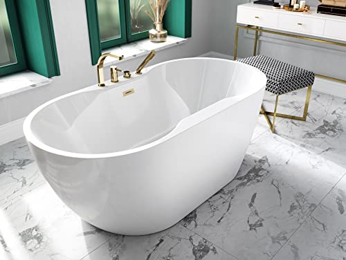 🛁MODERNES DESIGN: Freistehend und mit stromlinienförmigen Formen gestaltet, ist diese Badewanne minimalistisch und elegant; Es passt perfekt in die Badezimmer, die in vielen verschiedenen Stilen eingerichtet sind, darunter modern, glamourös und skandinavisch.