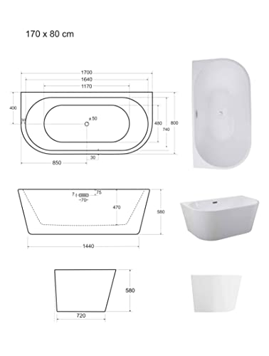 🛁PRAKTISCH & BEQUEM: Acryl bietet eine perfekte Wärmedämmung und hält die Wassertemperatur sehr lange aufrecht. Die Badewanne wird mit einem Klick-Klack-Siphon mit rechteckigem Überlauf geliefert (im Zins enthalten).