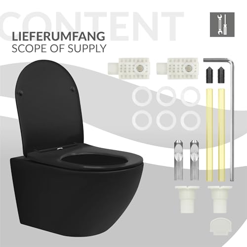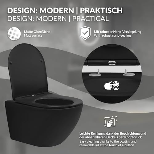 HÖCHSTE HYGIENE & EINFACHE MONTAGE – Unsere Toilette gewährleistet nicht nur eine gründliche Reinigung, sondern auch die spülrandlose Bauart. Dank der besonderen Nano Beschichtung seiner keimarmen und glatten Keramik Oberflächen kann das WC einfach und schnell gereinigt werden. Perfekte Wahl für maximale Hygiene und Komfort. Die Toilette ist einfach zu montieren. Das Zubehör für die Wandmontage im Lieferumfang enthalten sind