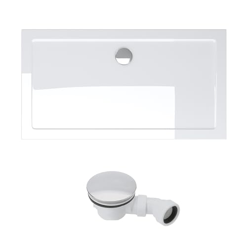 Mai & Mai Duschwanne Duschtasse 70x100x4cm Rechteckig Weiß aus hochwertigem Acryl inkl. Ablaufgarnitur AL02 Faro