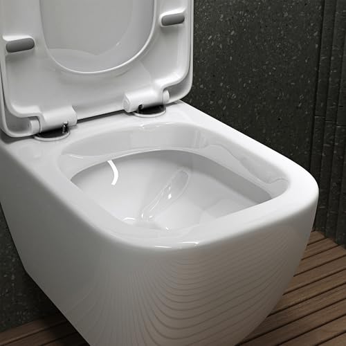 Mai & Mai Hänge WC Toilette Wand-WC Spülrandlos Weiß aus Keramik Wandmontage mit Absenkautomatik Aachen101