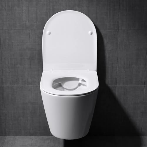 Mai & Mai Hänge WC Toilette Wand-WC Spülrandlos Weiß aus Keramik Wandmontage mit Absenkautomatik Aachen108-kurz