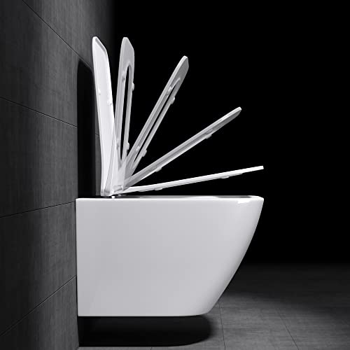 Mai & Mai Hänge WC Toilette Wand-WC Spülrandlos Weiß aus Keramik Wandmontage mit Absenkautomatik Aachen308