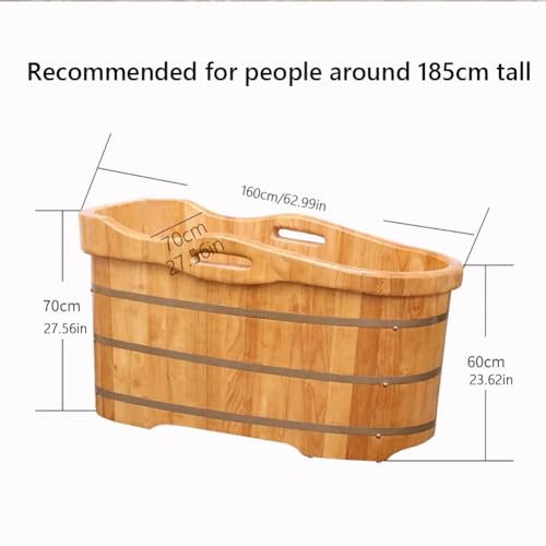 MegLob Holz Freistehende Badewanne, Spa Massivholz-Einweichenwanne Mit Handläufen, Klassischer Deep Soaker Für Hotel/Schönheitssalon, Mobile Innenbadewanne Für Kleine Badezimmer,160cm/62.99″