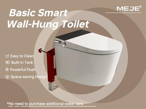 【Einfache intelligente Wand-WC-Kombination】: MEJE erstellt eine neue wandhängende WC-Reihung – die Retirade wird mit einem eingebauten Wassertank mit großem Fassungsvermögen und einem verdeckten Wandträger geliefert, einfache Installation. Es verfügt über grundlegende intelligente Funktionen: einstellbare Sitztemperatur, automatische Spülung, Fußsensorspülung, Nachtlicht und eine Spülfernbedienung.