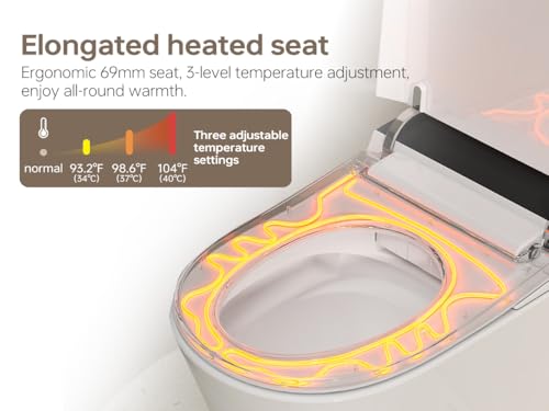【Beheizte Sitze】: Länglicher Heizsitz mit 4 einstellbaren Temperaturstufen, die die Temperatur nach Bedarf einsetzen können. Es eliminiert die Auswirkungen des Sitzens auf einem kalten Toilettensitz und sorgt für ein angenehmes Gemütsbewegung bei kaltem Wetter. Gestreckt